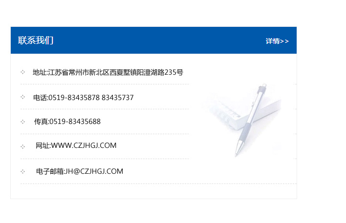 地址:常州市新北區友邦商務大廈1幢16、17層  電話:0519-85101652  傳真:0519-85112595  郵編:213022  網址:www_cz-jiayue_cn.nnzyjc.com  郵箱:xiajifengaa@163.com